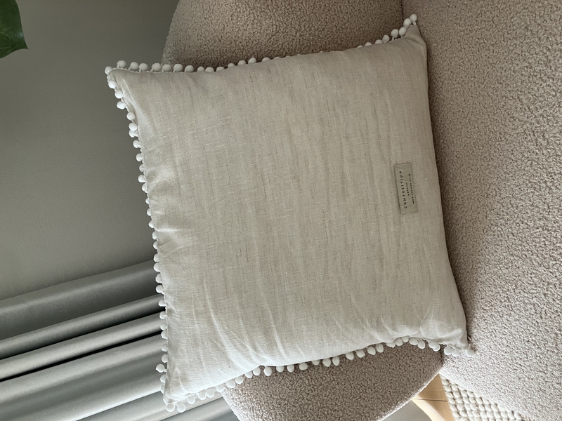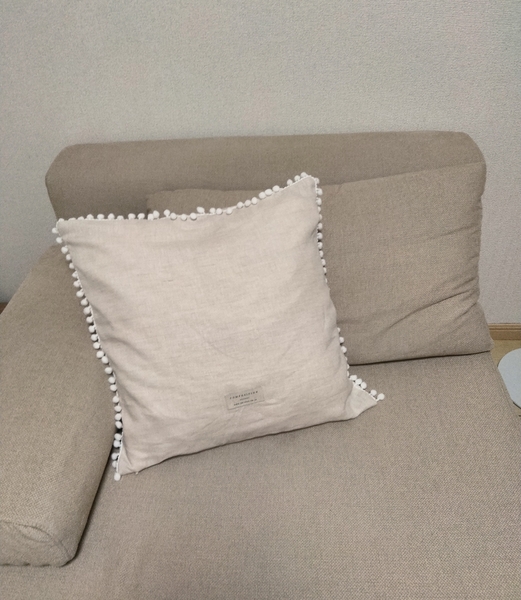 こちらは、深みのあるカラー展開が魅力の「リネンクッションカバー ナトゥーラボンボン」。クタっとしたリネン生地と、小さなボンボンも相まって、上質な雰囲気です。