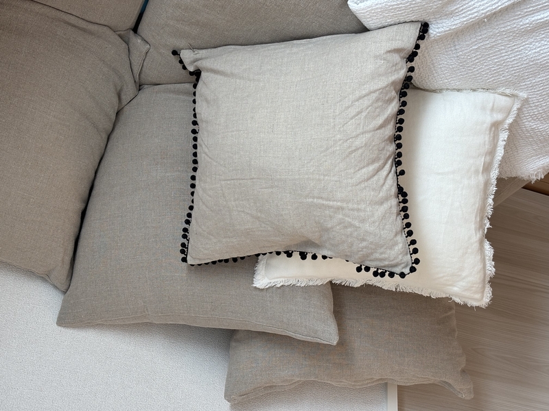 よりまとまりのあるお部屋に仕上げるなら、2つのクッションが持つブラックの要素をアートやフラワーベースなどにも取り入れることをおすすめします。