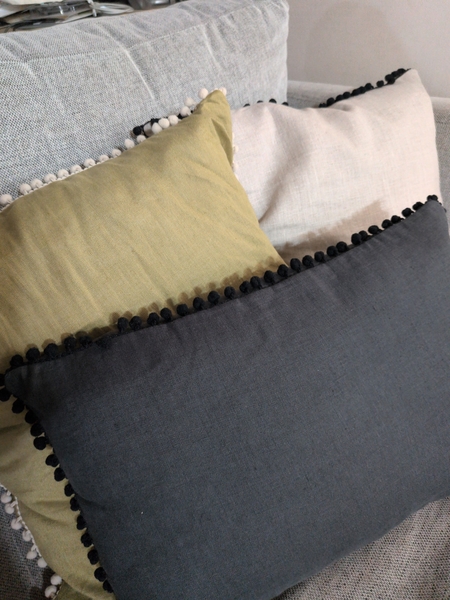 クッションの縁にボンボンがあしらわれているクッションカバーを購入しました。
