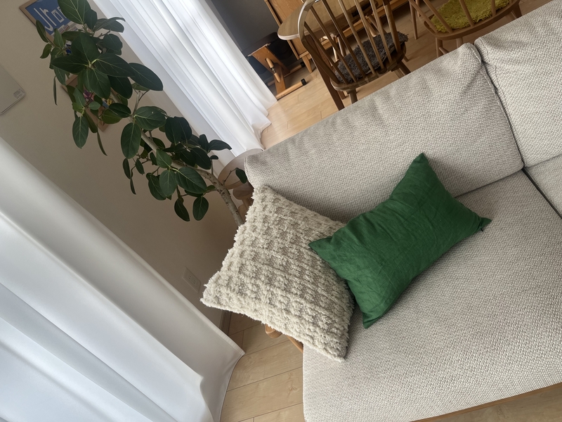 お部屋に緑を増やしたくて、観葉植物とも色を合わせたくてこちらのグリーンにしました。