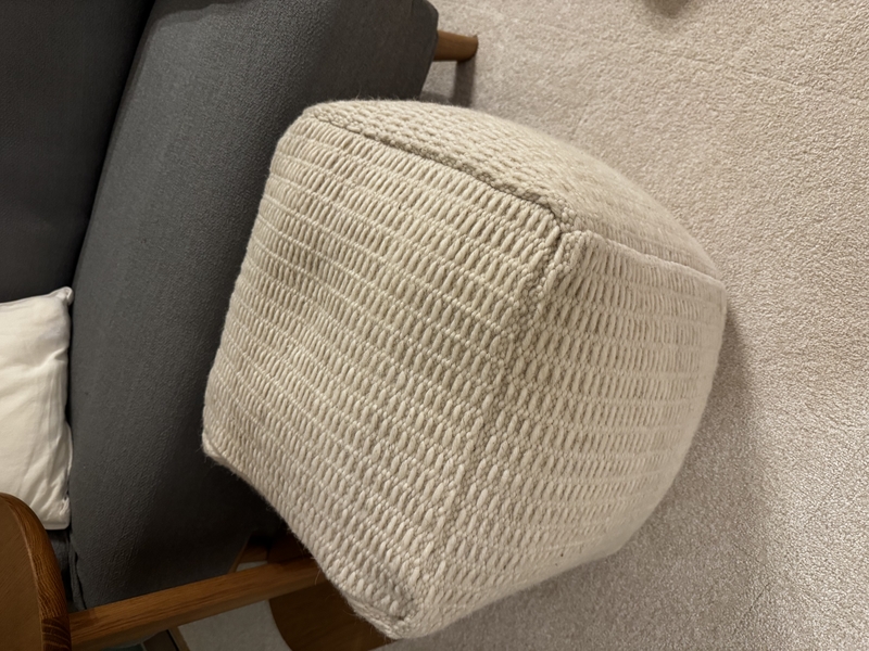 POUF formは、ソファーと高さが近しいため、手を伸ばすのにちょうどいいかと思います。