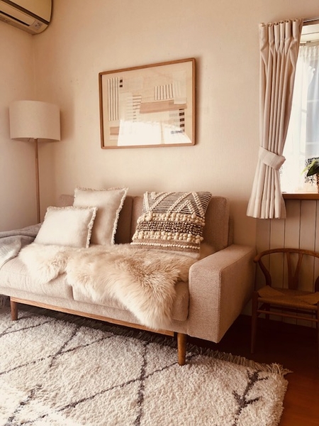 抱えたり枕にしたり、ソファーでの居心地をさらに良くしてくれるのはもちろんですが、アクセントとしてソファー全体の雰囲気を引き立てる役割もあります。