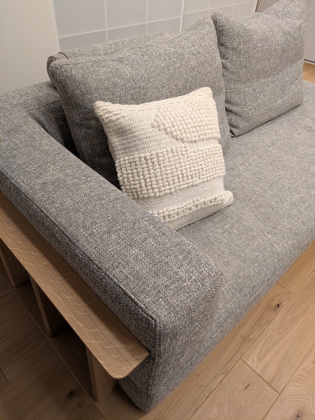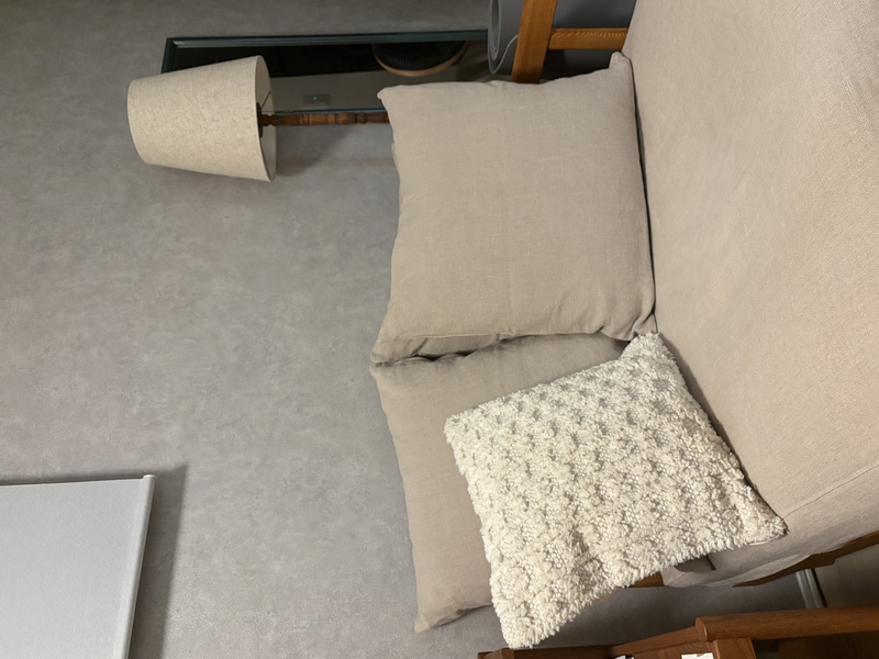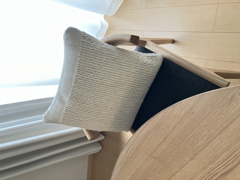 また、Woolithは、シンプルな色合いなので、少し個性のあるクッションとも喧嘩することなく、意外としっくりと馴染みます。