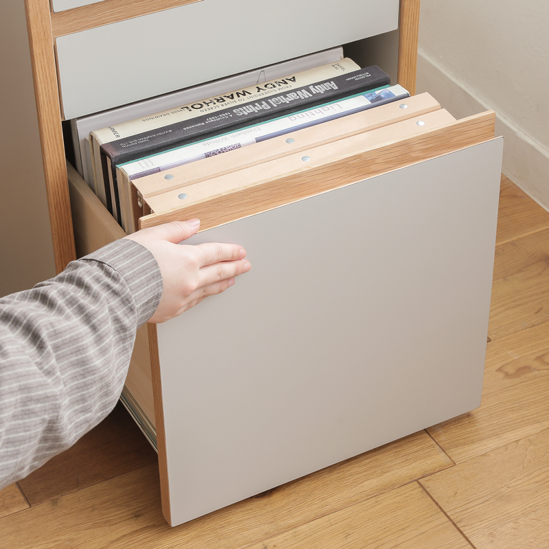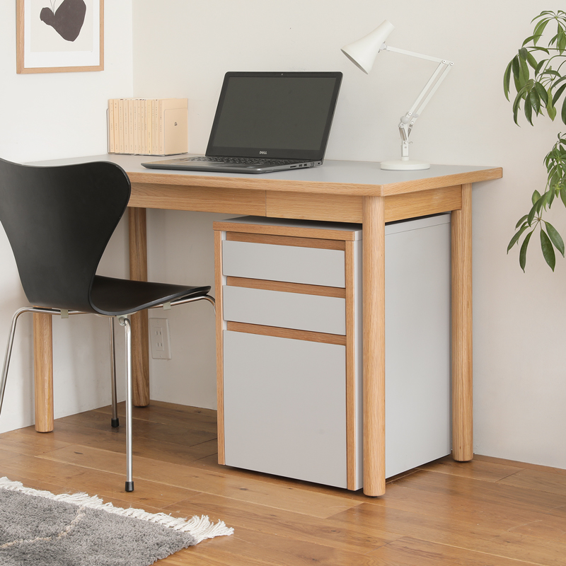 デスクの中に置いても、外に出しておいてもニュートラルカラーの抜け感で収納を増やしながらお部屋を広く見せることができます。