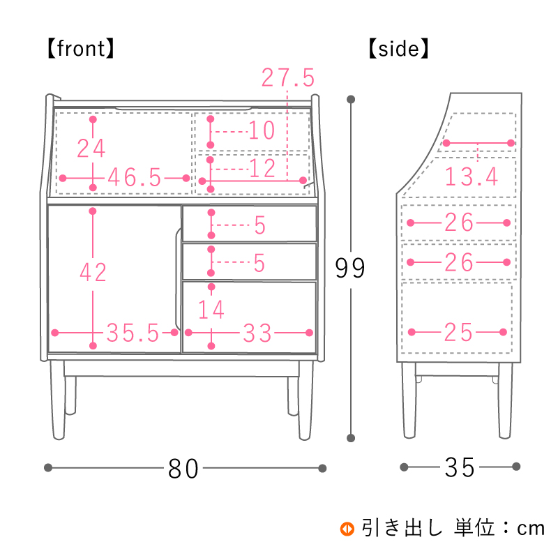 対してleftiは、奥行き「35cm」と、多くのビューローよりも抑えた設計にしています。