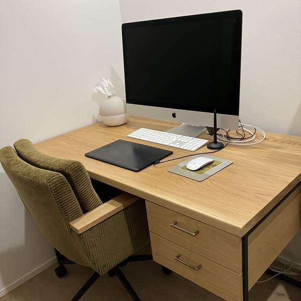 シンプルなデスクと、オフィスチェアと、PCが並んでいると、どうしても無機質な「仕事場」という印象を受けてしまいます。