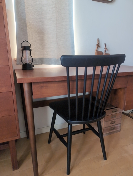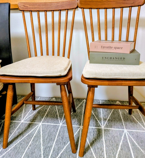 この椅子は背中部分がスポークのため、圧迫感が少なく部屋の雰囲気にとても馴染み、よりお洒落になりました。