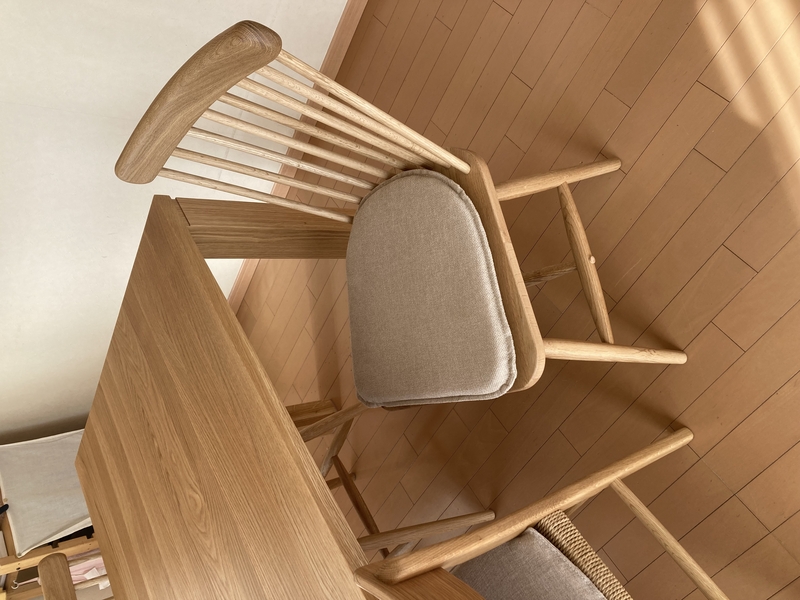ゆっくりお茶を楽しむ時間や、ご家族の団らんの時間にも、自然と寄り添ってくれるチェアになりました。