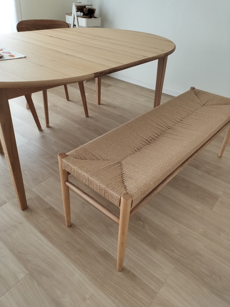 Re:CENOオリジナルのダイニングベンチ「folk(フォーク)」。ペーパーコードはへたりがほぼ無く、絶妙にしなやかな座り心地を、長く味わえます。