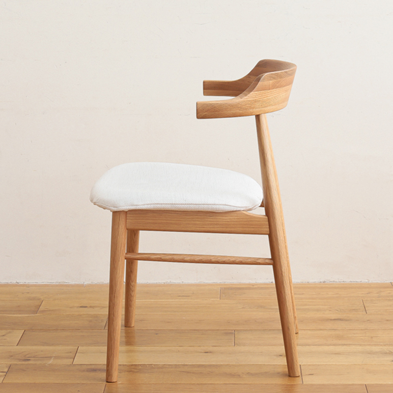 サイズはすっきり。でも、座るとゆったり。日常使いにちょうどいい、やさしいチェアに仕上がっています。