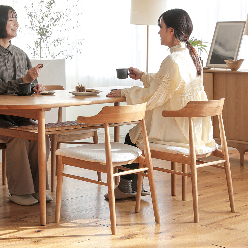 家族みんなが使うダイニングチェアだからこそ、気軽にお手入れできるのは大きな安心。いつでも清潔な状態で、気持ちよく使い続けていただけます。