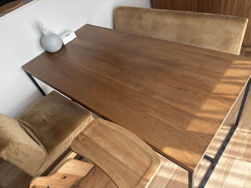 テーブルの天板は、木目が美しくて頑丈な無垢のオーク材を贅沢に使用し、1点1点表情が異なります。