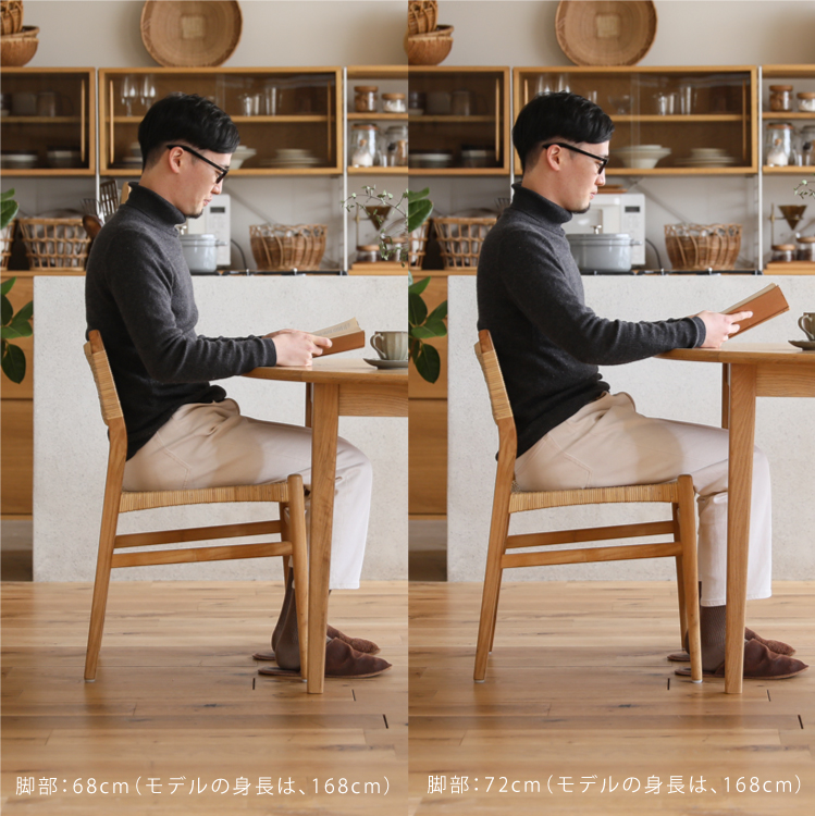 ダイニングテーブルは、脚の高さを68cm・72cmからお選びいただけます。