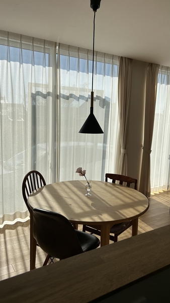 わが家は息子と2人暮らしで、リビングダイニングを柔らかく彩ってくれる、円形のダイニングテーブルを探していました。