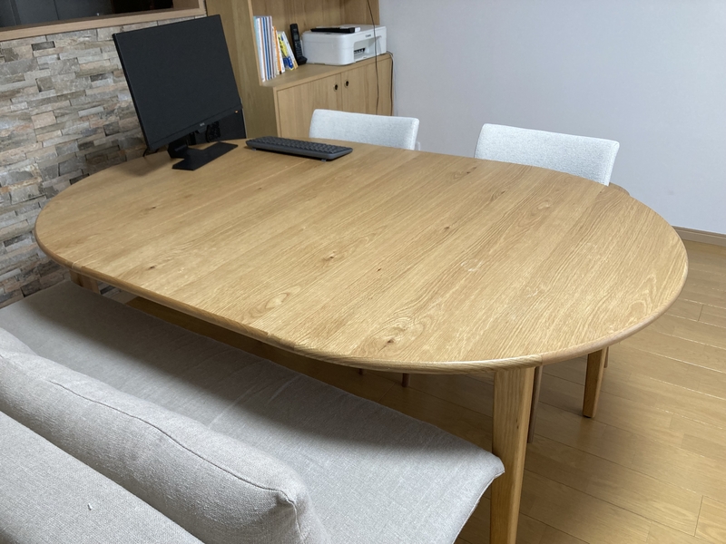 普段使いには110cmの円形でゆったりと十分だけど、家族や友人が集まる時には延長して使えるforkに目がとまりました。