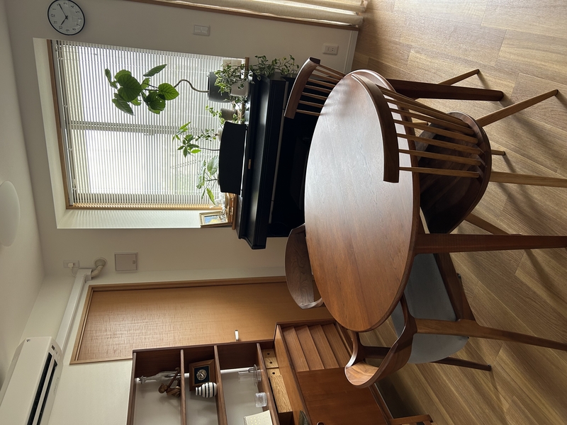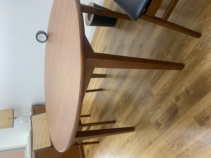 このダイニングテーブルは、奥行き(直径)が110cmあります。普通のダイニングは80cmくらいが多いですから、ずいぶんと贅沢なサイズです。