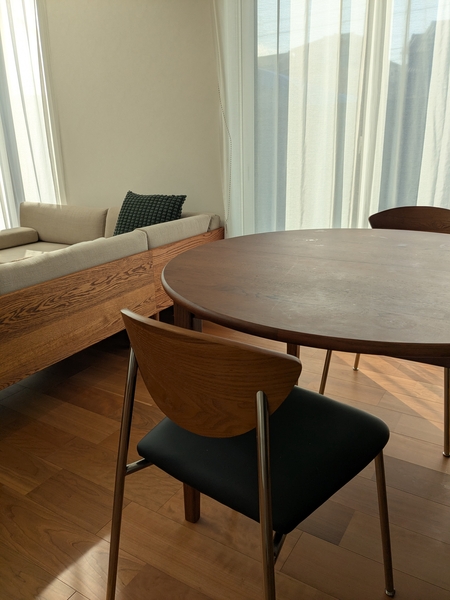 だから、自宅のダイニングでは、できれば奥行きは広めにとって、すこし人との距離をとった方が、楽に過ごせたりします。