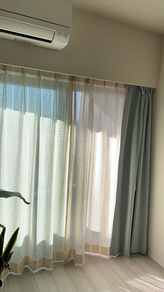 暗くしたいときは遮光カーテン、適度に光を取り入れつつ、視線を遮りたいときはレースカーテンというふうに、2つのカーテンを取り付けておくと使い分けができて便利です。