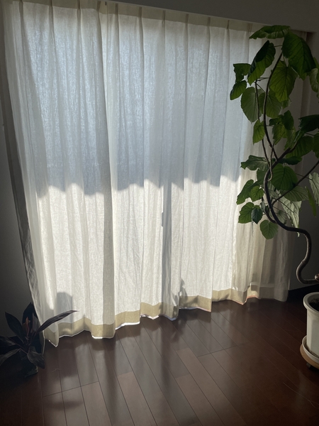 遮光カーテンのような圧迫感もなく、ほんのり透ける光が心地よいです。