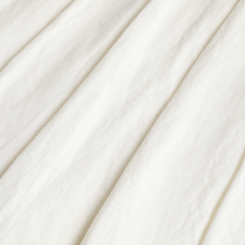 シンプルなデザインでも、味気なさを感じないのは、リネン特有の織り目の変化やムラ感が生む表情のおかげ。化学繊維の均一な質感にはない魅力です。