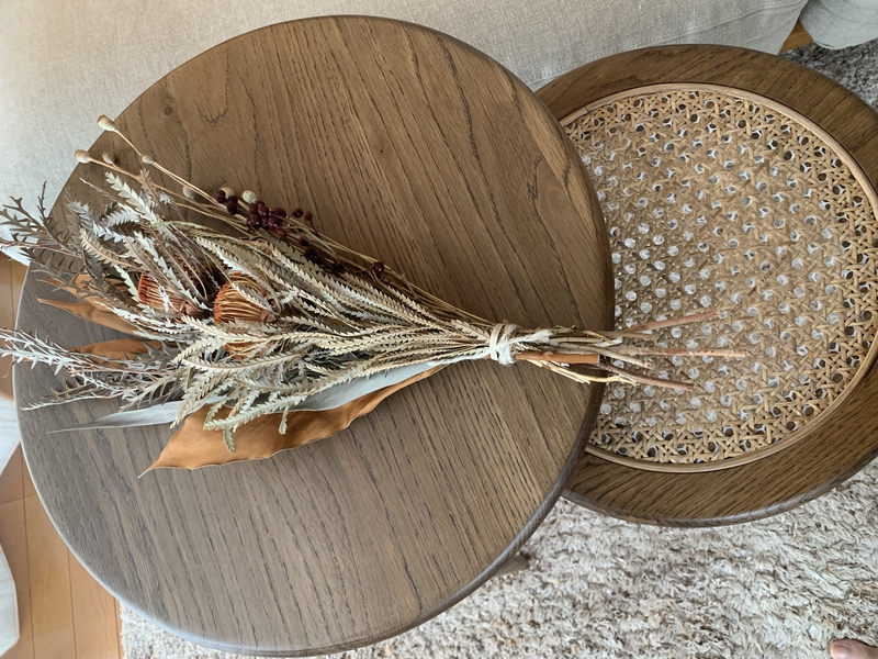 まず1つ目は、王道のドライフラワーを中心にコーディネートしたところ。
