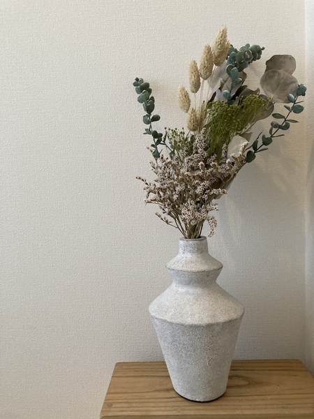 かすれた風合いのドライフラワーと相性よく馴染み、あたたかみのあるディスプレイに仕上がります。
