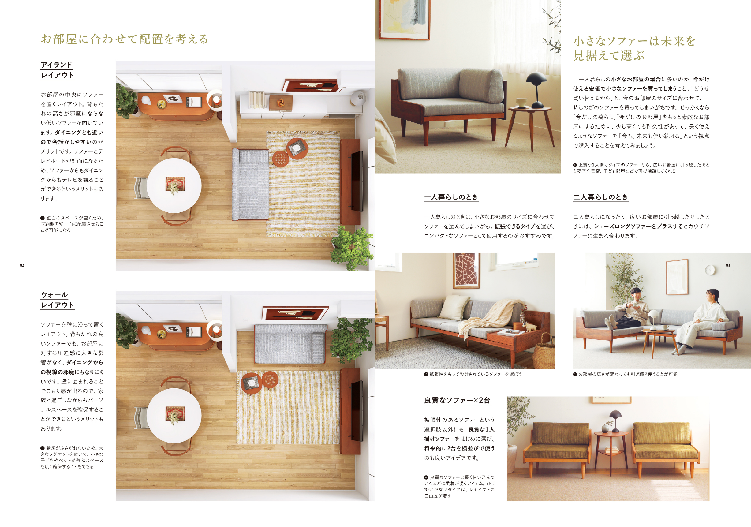 続いては、家具やインテリアの「選び方」や「レイアウトのコツ」「色選び」など、「配置」=骨格となる部分を学ぶ章です。土台となる部分をしっかりと学んだ上で部屋づくりをすることで、暮らしやすさと美しさを両立した空間を作ることができるようになります。