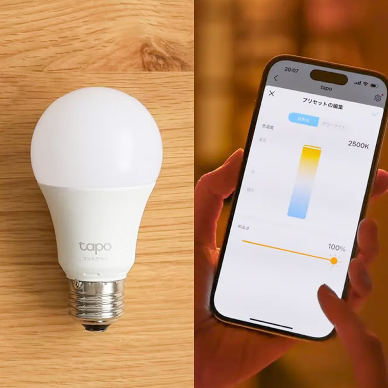 シーンに合わせて光の色を変えたいという方におすすめなのが「スマート電球」。専用アプリで光や色を自在に調整でき、快適な暮らしを送ることができます。