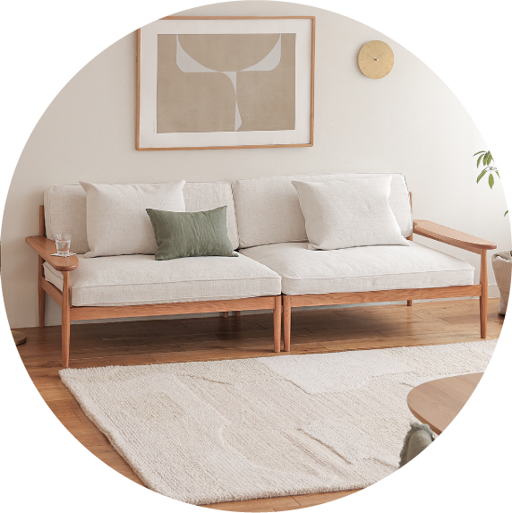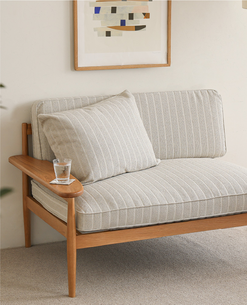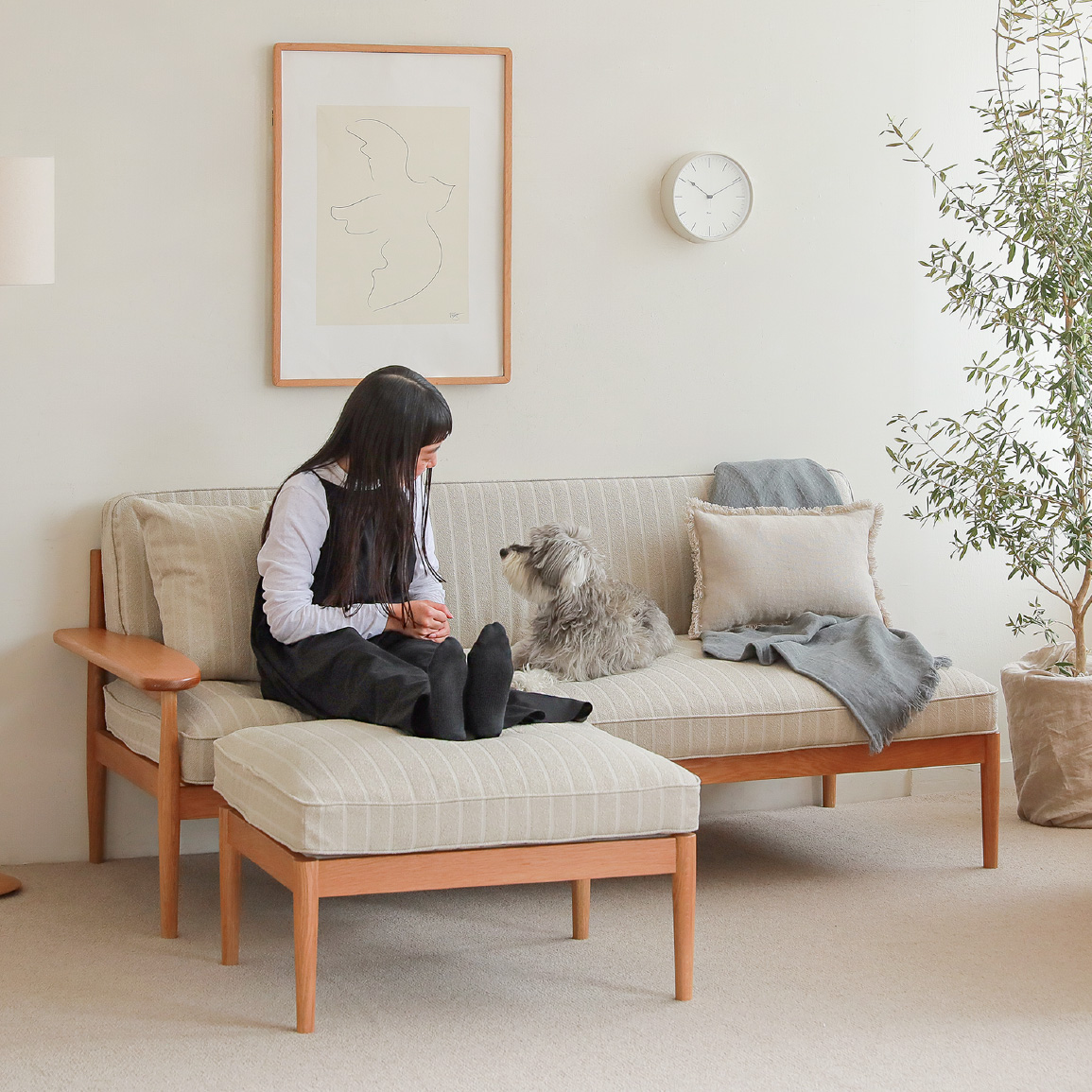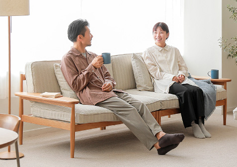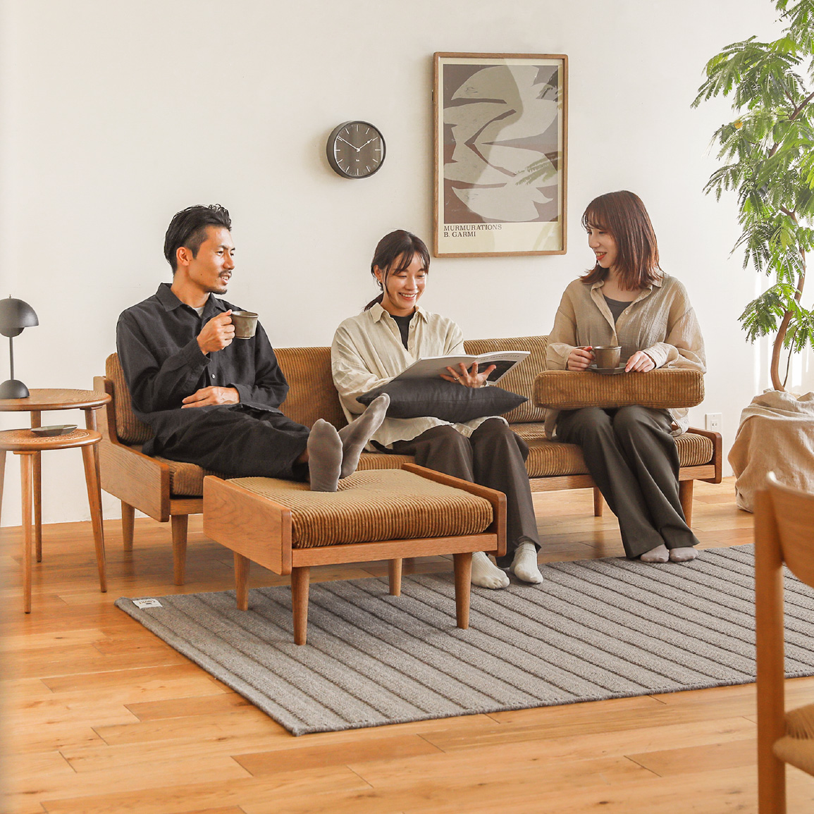 1.5 seater sofa全長240cmと、幅180cmの3人掛けタイプより大きなソファーの組み合わせ。木製フレームの温もりある意匠性はそのままに、みんなでゆったり座れる快適性も兼ね備えています。
