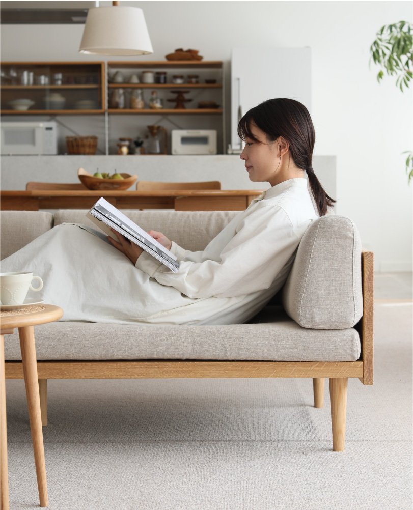 ゆったり横になりたいけれど、圧迫感は出したくない。希望が叶う、暮らしに寄り添うソファーです。