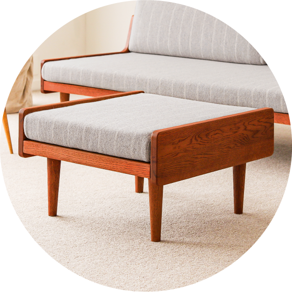 普段はオットマンやソファーに横付けして使いながら、来客時には使い方を変えてお客様用のソファーにすることも。臨機応変にマルチな使い方ができるのも魅力の一つです。