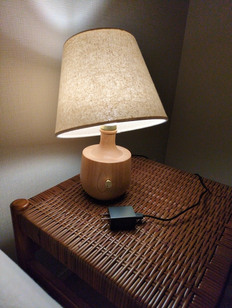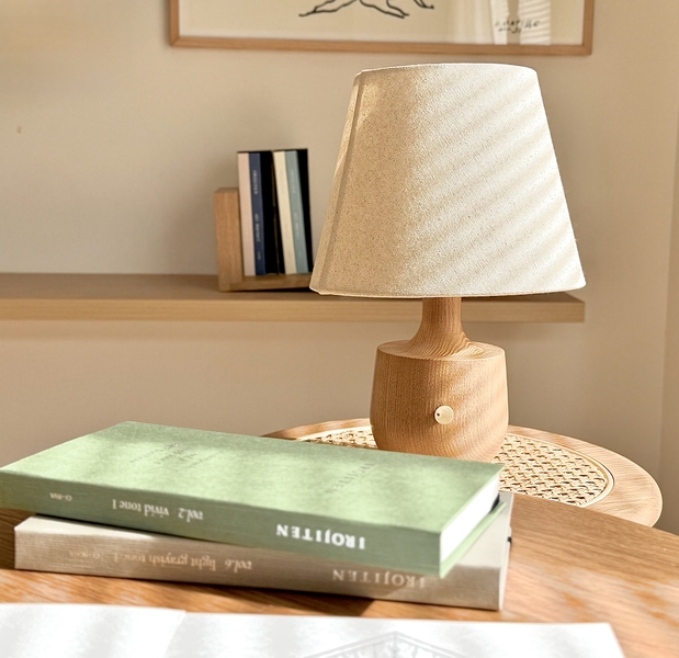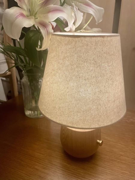 ぽってりと丸い木製部分の中にバッテリーが仕込んであり、そのバッテリーの出力を調整することにより、調光することが可能です。
