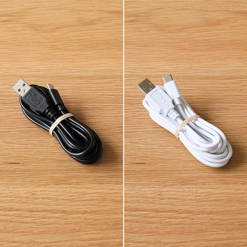 付属の充電コードは、2mと長めのものをご用意しています。近くのコンセントまで2m以内であれば、点灯したまま充電も可能です。
