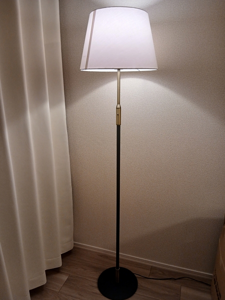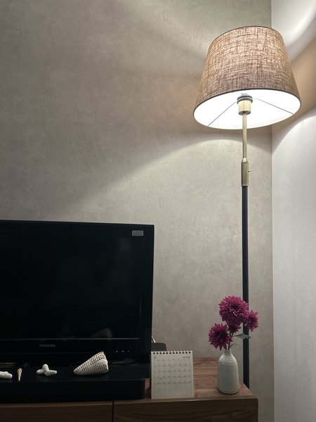 夜はやわらかい灯りでお昼はインテリアとして1日通して存在感があります。スタンド部分はブラックを選びましたがマットな質感で上品です。お部屋のオシャレ格上げにオススメです。