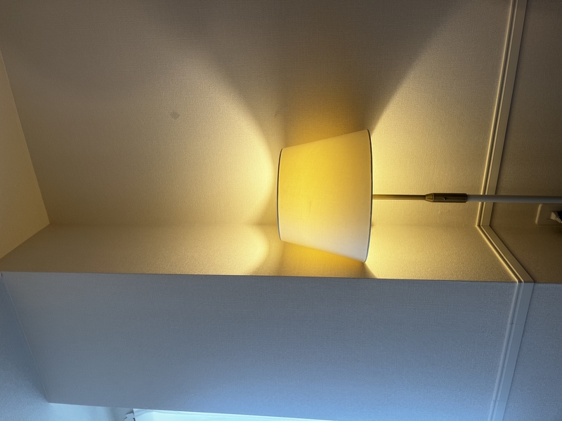ただし、シェードの縁部分の処理が甘いのが、暗い部屋で点灯したときに分かります。(写真のシェード下側の縁部)