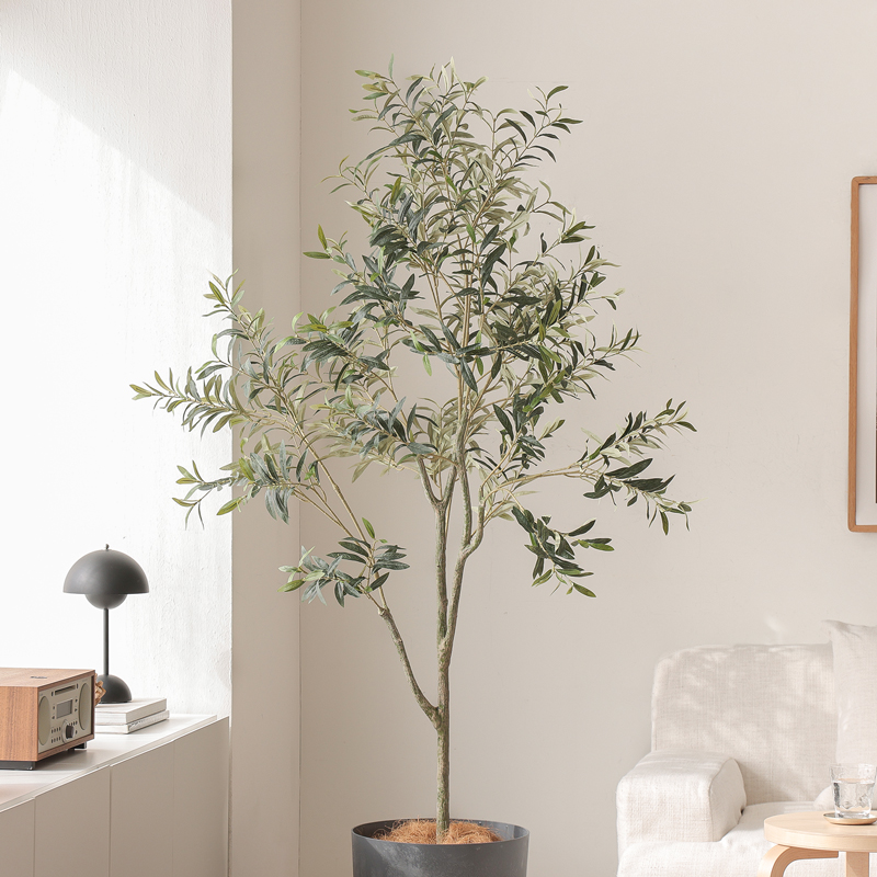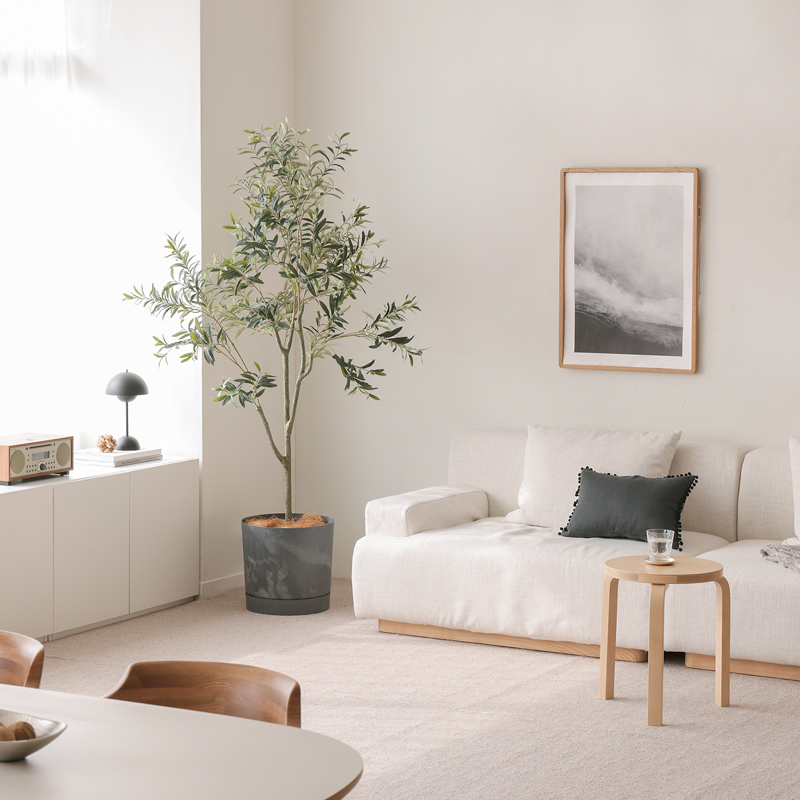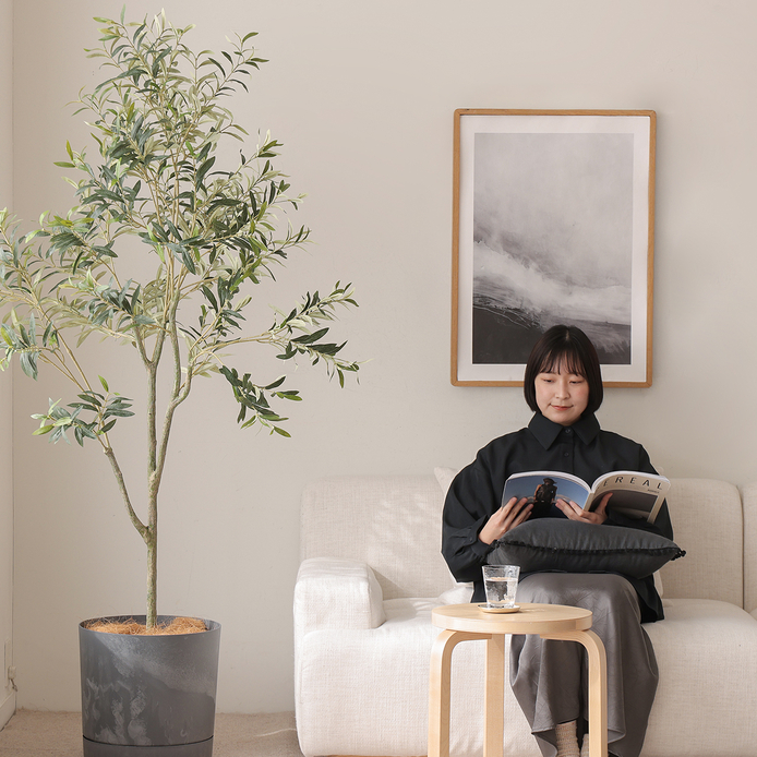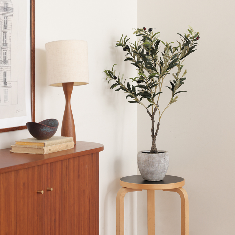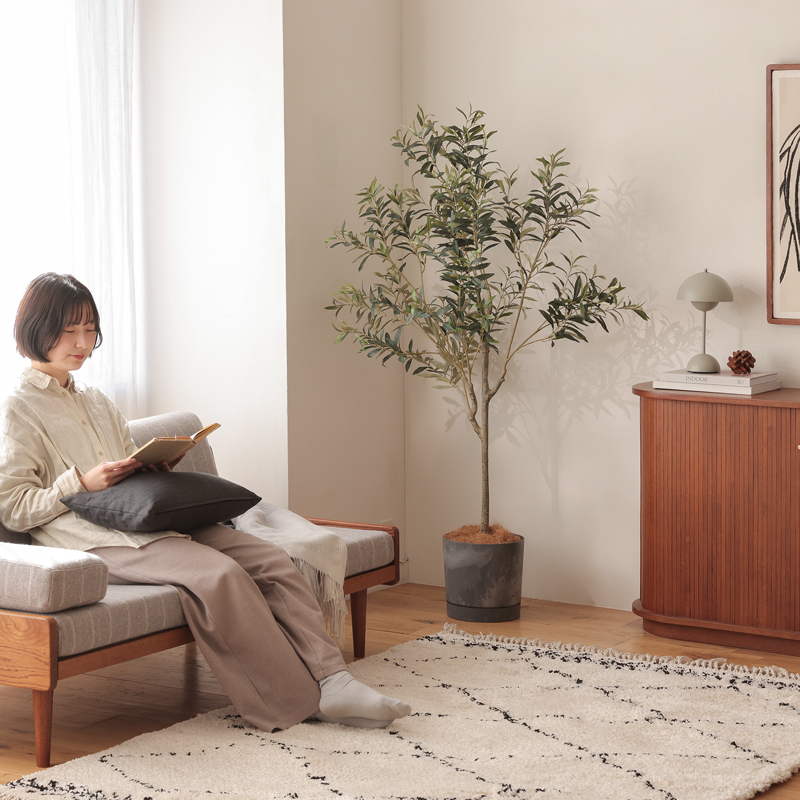 集中力が求められる書斎などの作業場所では、安らぎを感じさせるオリーブがおすすめ。デスクの横に置くと、バランスを取りやすいです。