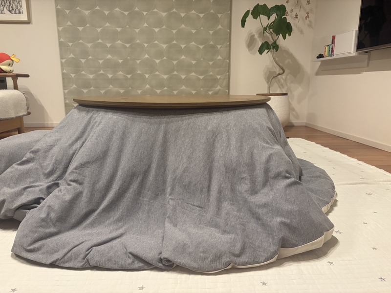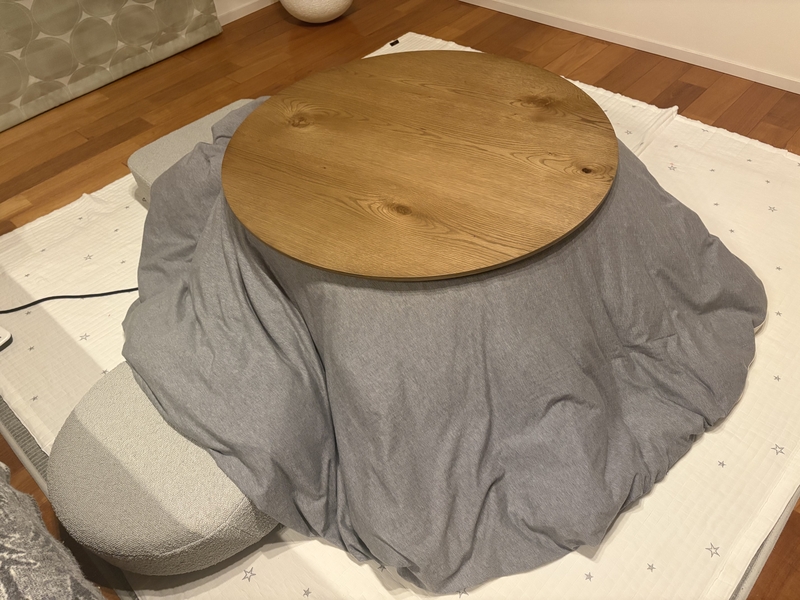 また角がない分、同じサイズのこたつテーブルに比べて、周辺が歩きやすいというポイントも。