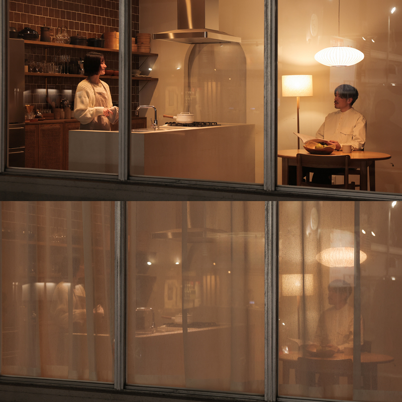 ドレープカーテンの「遮光裏地縫製」をお選びいただくと、さらに人影や部屋の明かりを抑えられます。