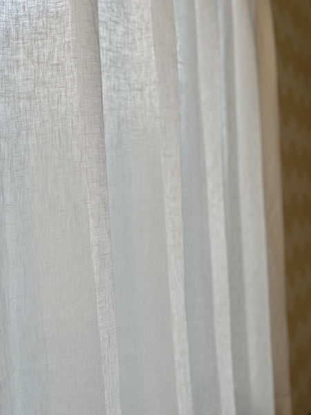 こちらは、リネン(麻)100%の天然素材を使用した薄地のレースカーテン「Utena(ウテナ)」。質感はガーゼに近い粗目の織りで、サラリとした肌ざわりです。