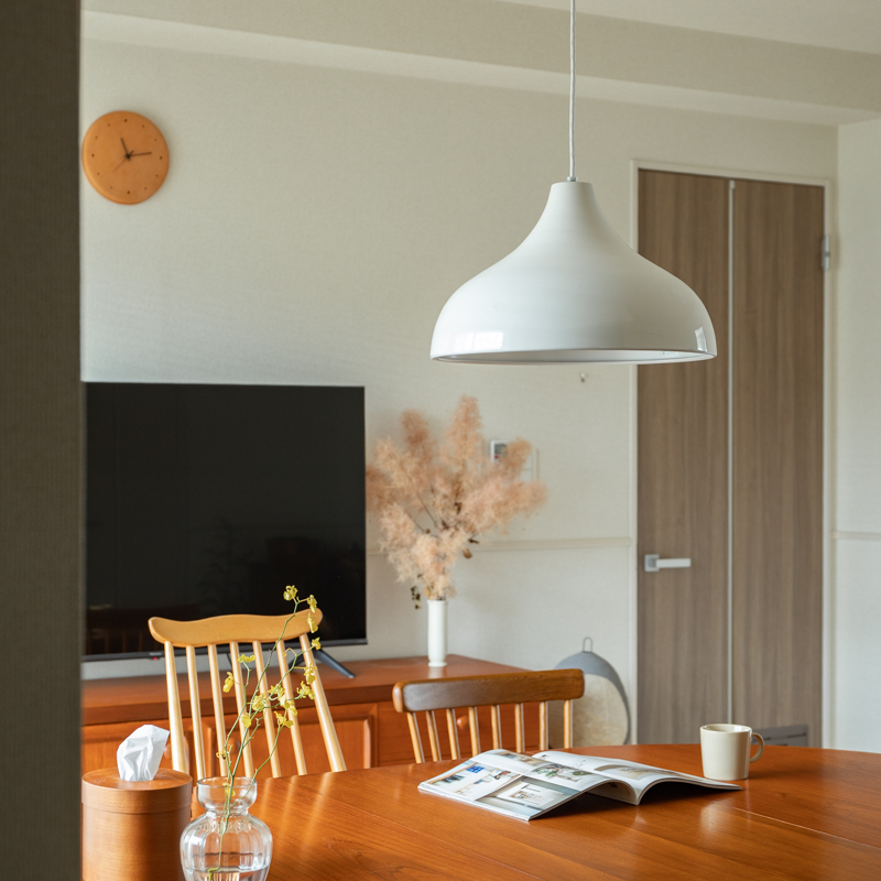 お部屋の天井高や、テーブルのサイズに合わせて、コードの長さを調整することで、照明の見え方がぐっと洗練されます。
