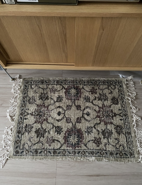 50cm×70cmは一般的な住宅の廊下や玄関にも合わせやいサイズ感。シェルフ前以外にも多用いただきやすいため、1枚あると便利です。
