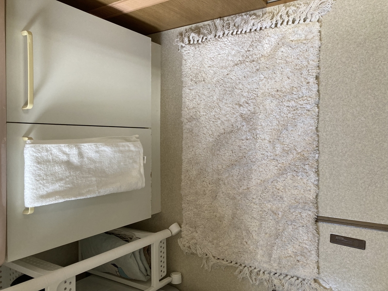 朝起きた直後や寝る前に、裸足で歩くことも多い洗面所。マットを敷いておけば、冬の足元の冷えも軽減してくれます。