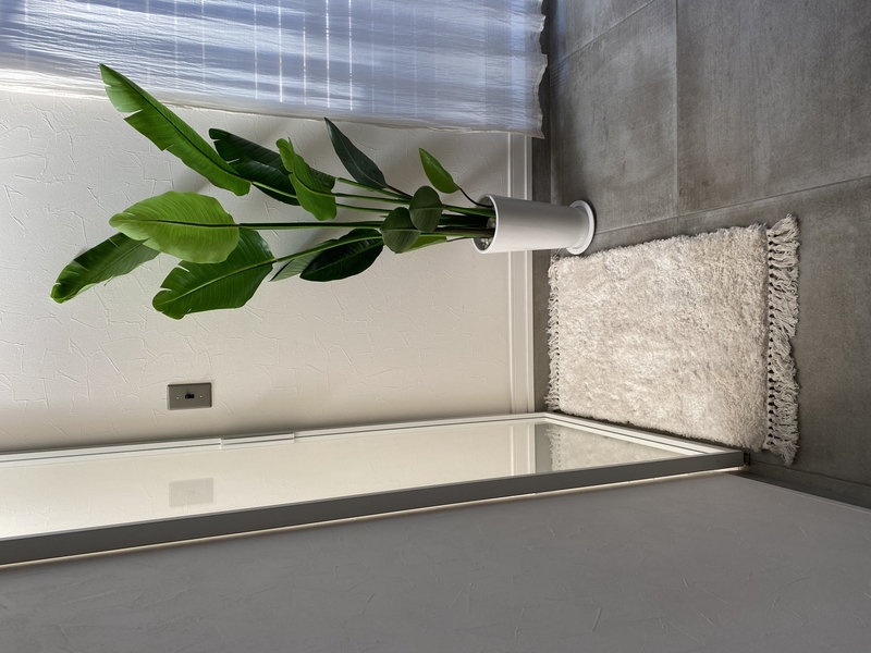 無機質な印象になりがちな洗面&バスエリアですが、立体感のある「LUCE Natural」を敷くことで、こだわりを感じる空間に。