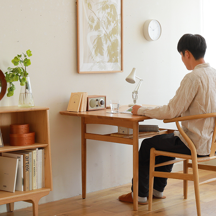 使用しているのは無垢のビーチ材。木目が均一で美しく、質のよいアンティークのような色合いをしています。ウレタン等を使わずオイルのみで仕上げた木肌は、お部屋にすっと馴染み、雰囲気を温かくしてくれます。