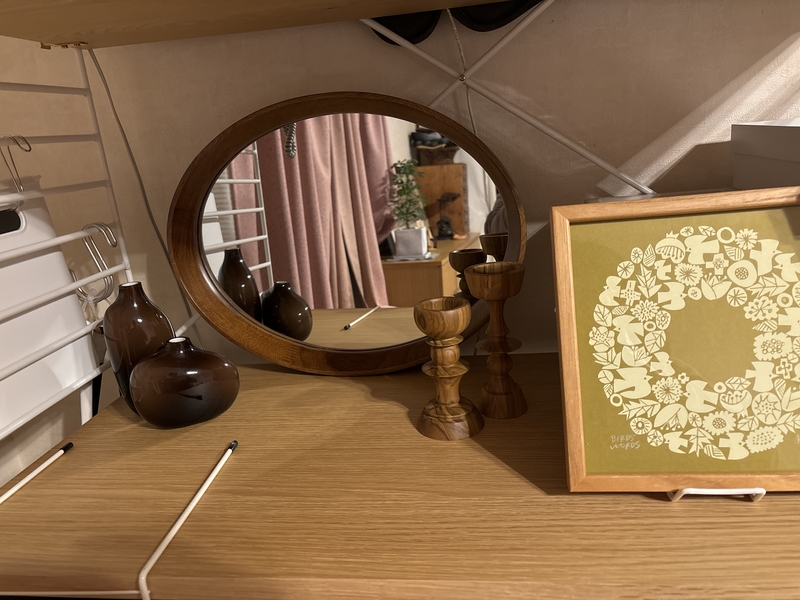 ワンルームでは、シェルフの上に横向きで立てかけておくことで、雑貨としてコーディネートしながら、ドレッサーのようにお使い頂くことができます。