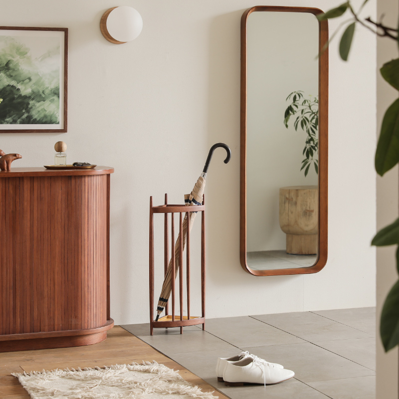 温もりのあるデザインと、空間をより広くみせる機能が魅力的なレクタングルミラー。スペースを活用してコーディネートを楽しみましょう。
