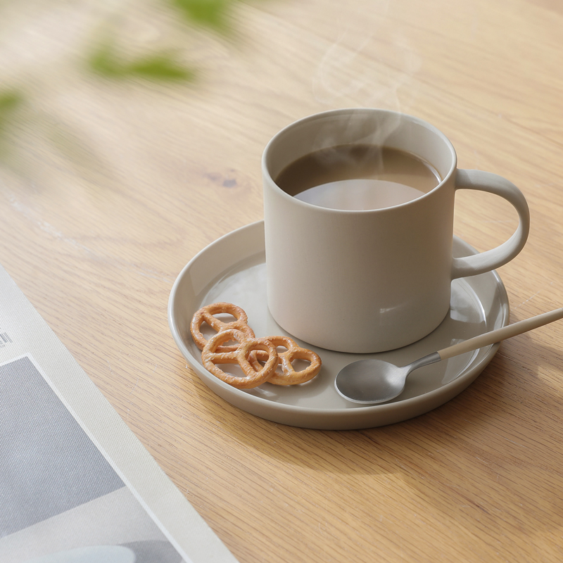 同シリーズの15cmのプレートと合わせれば、カップ&ソーサーに。ちょっとしたお菓子を添える余白もあります。