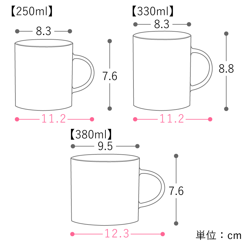 ちょっぴり背の高い「Mサイズ」は、満タンで約400ml、適量は約330mlです。