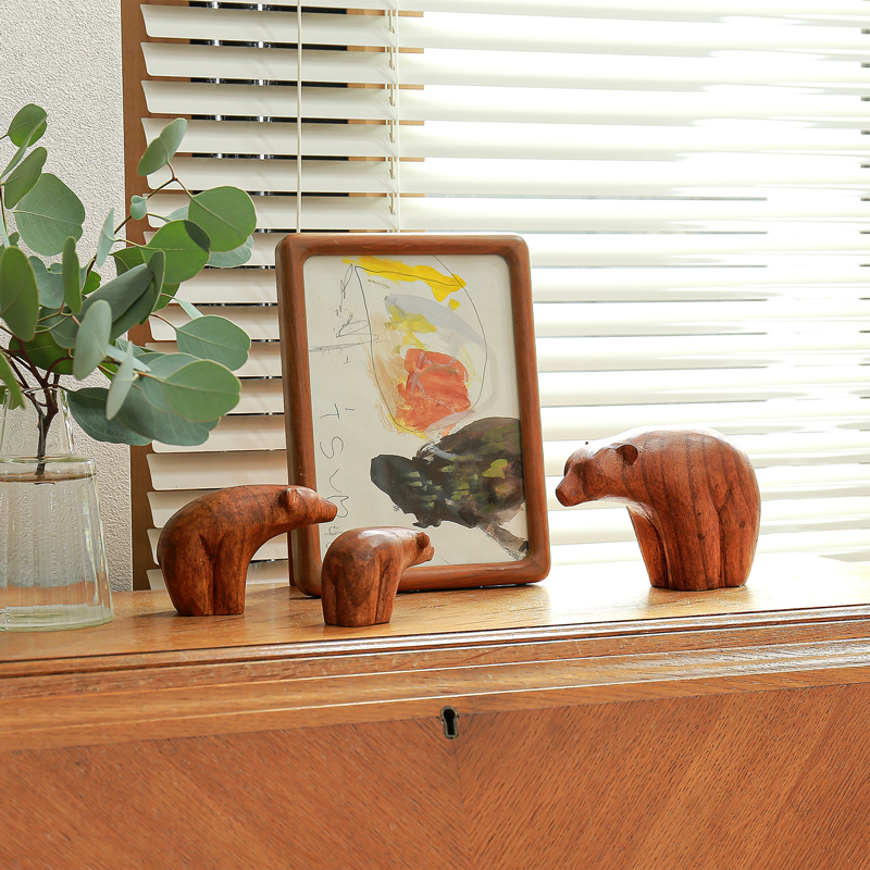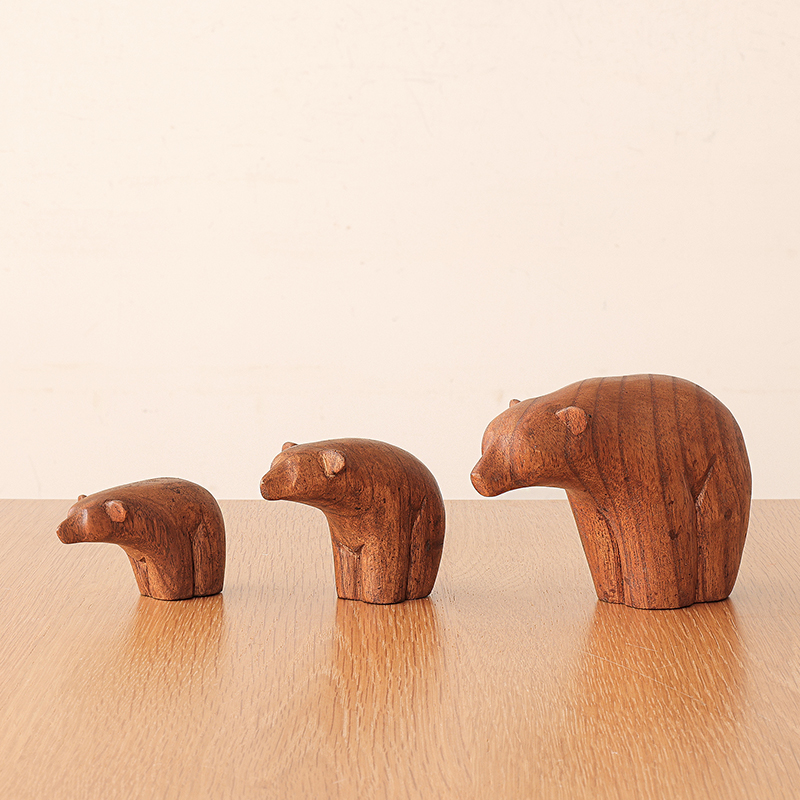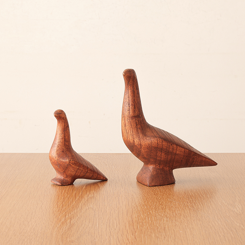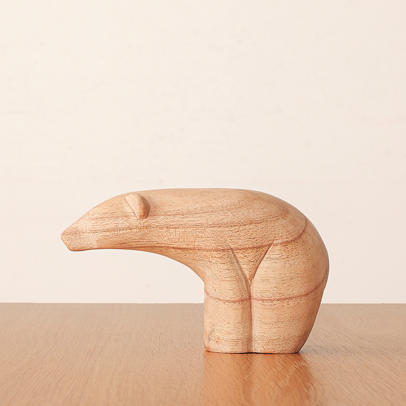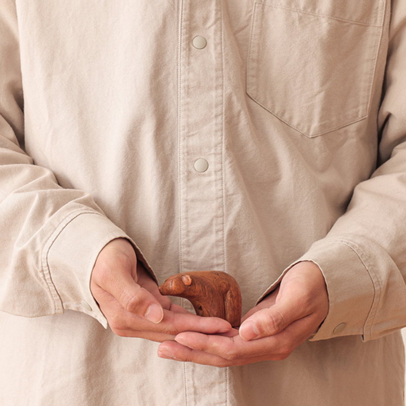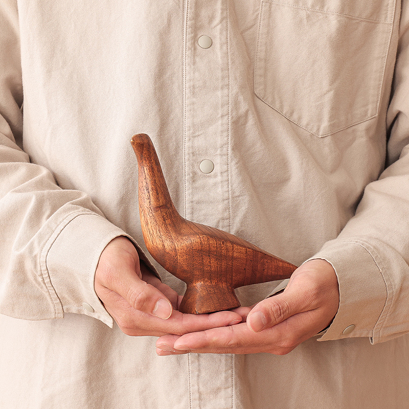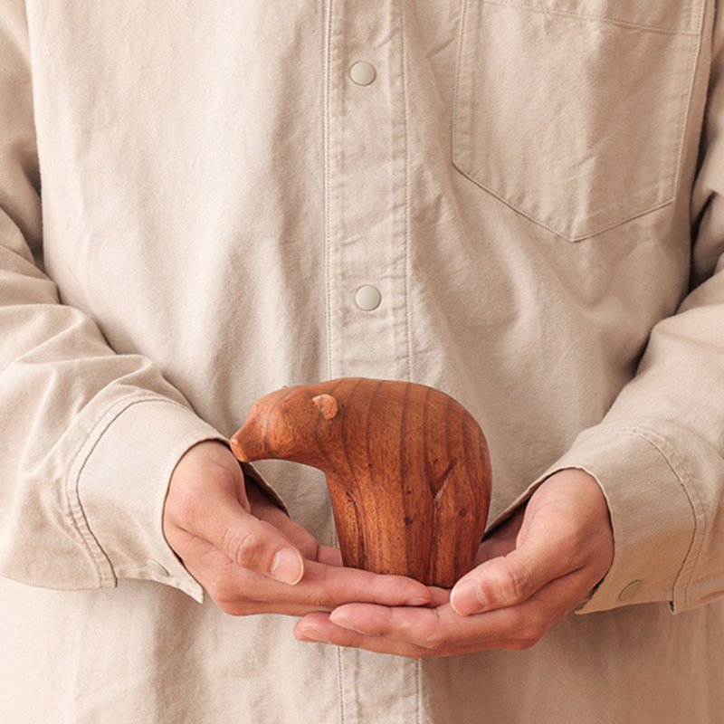 穏やかな木目や、硬すぎない素材が魅力の木材で、やわらかなフォルムを引き立てたい動物オブジェに採用しました。