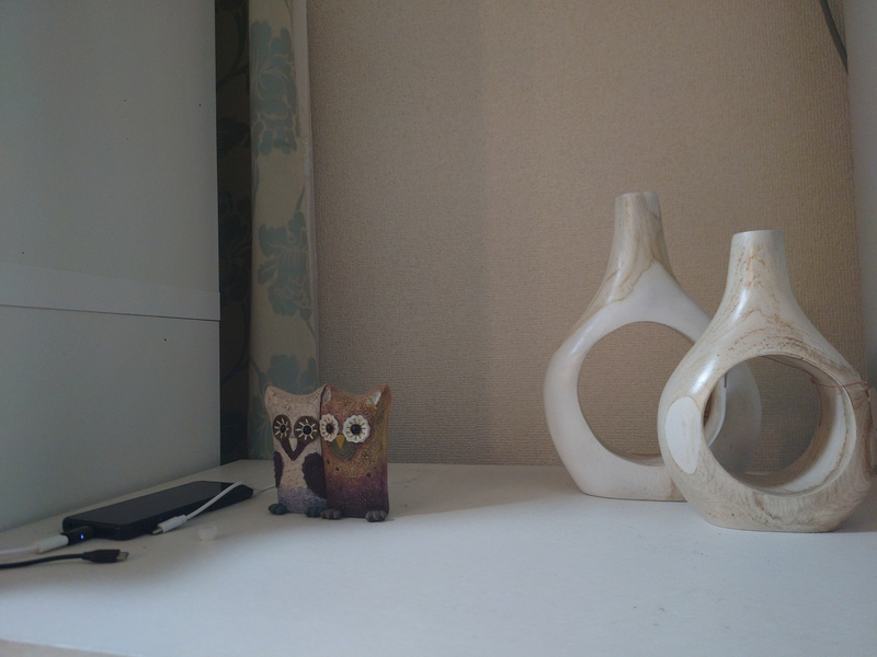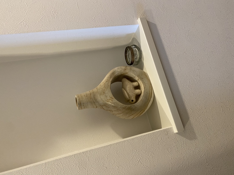 ここに、少し収納量を減らしてオブジェを飾ってみました。